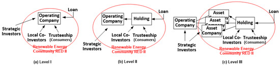 - Baigorrotegui, G.; Lowitzsch, J. Institutional Aspects of Consumer (Co-)Ownership in RE Energy Communities. In Energy Transition-Financing Consumer Co-Ownership in Renewables; Lowitzsch, J., Ed.; Palgrave Macmillan: London, UK, 2019; Available online: https://link.springer.com/book/10.1007/978-3-319-93518-8 (accessed on 5 December 2019).
