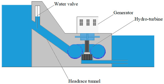 Figure 1 illustrates the basic schematic of HS. The operation process of HS is mainly based on the high ground difference between the reservoir and the power plant to guide the high-level water stored in the high mountain reservoirs and lakes to the hydraulic power at a low level through the water diversion pipe system. There are two main parts in HS, i.e., hydro-turbine and generator. A hydro-turbine is much like a windmill, except the energy is provided by water flow instead of wind. The turbine converts the kinetic energy of water flow into mechanical energy. Connected to the turbine, the generator spins also to converts the mechanical energy from the turbine into electric energy. Thereby, the hydropower plant could provide electricity to homes and businesses by transmission lines.