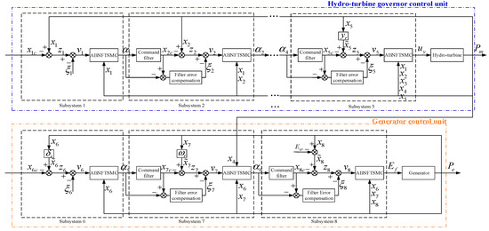 21], the nonlinear model of the hydro-turbine governor control unit can be expressed as Equation (1), where