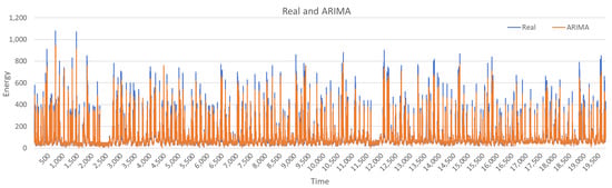 Figure 7 shows original data (energy consumption feature) and ARIMA fitted model for UCI data set.