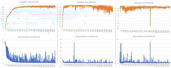 Figure 9 shows generator and discriminator loss for the learning rates (LR)
