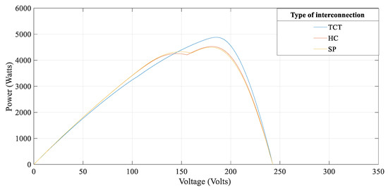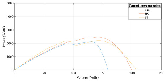 In this section, the obtained results are compared and discussed in detail. An increase in power generation during all developed faults is calculated by comparing the MPP of designed interconnection, which produced reduced peak power, with the considered interconnection as shown in Equation (10), and a detailed comparison of results is given in Table 11.