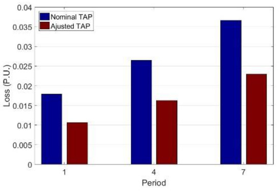 On the other hand, the MTOPF simulated all the scenarios at the same time, adjusting a unique combination of taps that satisfy all of them. So, each DT tap was adjusted to obtain the best positions for all periods considered simultaneously. Because of that, MTOPF is the method that provides the best results with good computational performance because it comprises a systematic process that encompasses several operating conditions simultaneously and executes the program only one time and not repeated for each individual scenario.