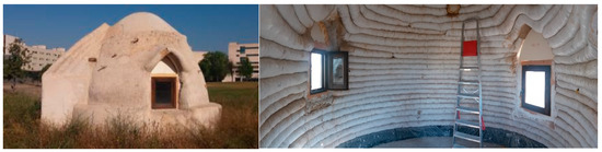 Earthen architecture historically has been widely used for wall construction around the world. According to Minke [1] earth construction has been used for more than 10,000 years. Today, it is estimated that nearly 30% of the world’s population lives in earthen dwellings, not only in developing countries but also in industrialized countries, where using earth as a construction material has raised interest recently, as it is considered an environmentally friendly solution. Particularly, Earthbag (also called Superadobe) is presented as a sustainable, cheap, feasible and comfortable option to improve thermal comfort. Superadobe is a form of Earthbag construction patented and developed by the Iranian architect Nader Khalili, who proposed fundamental rules for the design and building recommendations [2]. Earthbag and Superadobe are building techniques that consist of the use of earth-filled sandbags in order to build structural walls, usually in a dome shape [3]. The dome shape offers more structural integrity and durability than adobe square buildings [4], but also limits its design to 5 m in diameter and one ground floor. The dome shape allows the foundation, load-bearing walls and roof to be built with the same materials and technique. In low-cost buildings, the roof used to be the part of the building with the highest cost. Thus, this building technique is four times cheaper than conventional techniques [5]. When comparing two low-cost earthen buildings, such as Earthbag dwelling and adobe traditional Burkinabe dwelling, the Earthbag one achieves better thermal performances in hot arid climates. In that case, a combination of night ventilation, roof solar protection, and high-inertia of the Earthbag enclosure lead to an almost total elimination of thermal discomfort during the year [6]. Among their possible uses, the Earthbag building is a good solution to temporary emergency housing, as shown in the construction of 14 Earthbag shelters in the refugee camp of Baninajar [7]. The architect Khalili built them for the displaced Iranians in Iraq after a flood. The project also served to assess the feasibility and cost of building with Earthbag and to evaluate the possibilities of Earthbag shelters in the case of a real emergency [8]. Earthbag building has also been used in cooperation projects, such as the construction of part of the Emsimision Training Medical Center in the Boulmiuogou District, in Ouagadougou, Burkina Faso [9]. After the earthquake of 2010 in Haiti, humanitarian aid of different organizations constructed several buildings with Earthbag and Superadobe techniques, such as numerous houses for those affected inhabitants [10], a medical clinic [11], a school for orphans [12], a community center [13], a shelter for children, and some experimental Earthbag buildings for scientific tests [14]. In Nepal, the Small-Earth partnership built an orphanage with Superadobe [15]. Because of the particular location of the orphanage, in a hilly area with difficult access, the Superadobe system was a good choice, since it allows the use of local resources, such as earth and stones, and it only needed to transport bag rolls to the place.