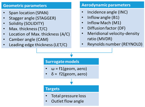 The steps for building the surrogate models for total pressure loss and deviation angle (flowchart shown in Figure 4) are as follows: