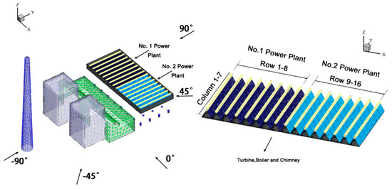 - Yang, L.J.; Du, X.Z.; Yang, Y.P. Influences of wind-break wall configurations upon flow and heat transfer characteristics of air-cooled condensers in a power plant. Int. J. Therm. Sci. 2011, 50, 2050–2061. [Google Scholar] [CrossRef]