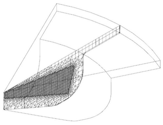 Based on less time, instead of the whole cylinder geometry, calculations were conducted on a sector with periodic boundaries. Since a seven-hole the injector was mounted on engine, a geometry of a sector with 51.42 degrees was created as shown in Figure 1. The fixed embedding option with the length of 0.06 m for covering the liquid and parcel fuel areas, around the injector, was activated to make the calculations more precise. Having analyzed the primary results of grid sensitivity to ensure the grid independence, a 49,000-cell grid and a base cell with the size of 2 mm was chosen due to the best tradeoff between computational time and accuracy. To make the results reliable, created models of engines should be validated against the results in the literature. The present simulation validated against the experimental data reported by Chuahy et al. [23] at the University of Wisconsin-Madison.