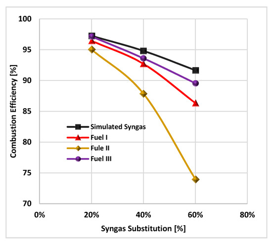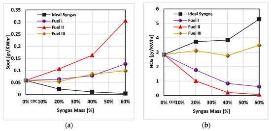- Presence of N2 in syngas composition at all syngas substitution ratios force the temperatures to be decreased. Thus, less NOX is achieved by the fuels with nitrogen in their composition (Fuels I and II).