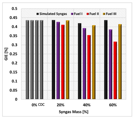 - It is expected that the engine may suffer from achieving a stable state at low loads using fuel II due to very low H2 percentage in the syngas.