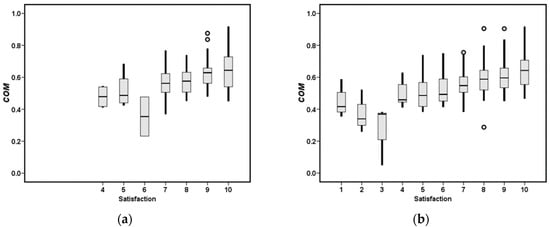 Interdependency between overall satisfaction with the service and the COM variable (Capability-Opportunity-Motivation) of: (a) professional soldiers, (b) conscripts.