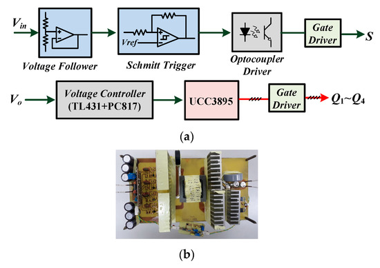 Prototype circuit (a) control block of the signals S and Q1~Q4 (b) picture of the prototype.