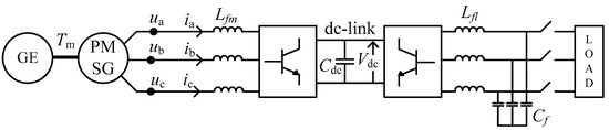 Gas engine generators are mobile electric power generation units that can operate in both stand-alone and grid-connected modes. Therefore, they are widely utilized in many commercial and industrial applications as well as in distributed generation systems [1,2,3,4,5,6]. In gas engine power generation systems, the generated electrical power is supplied to the load or to the grid by using a power electronic system which performs ac–dc–ac power conversion. In industry, two structures of power conversion can be used for the generator side converter. The first one is based on an uncontrolled diode rectifier which is simple and easy for the sake of implementation. The second one is the insulated gate bipolar transistors (IGBTs) based rectifier which can be controlled by the pulse width modulation (PWM) method. In both cases, the voltage source inverter is connected to the load or the power grid. The first technique causes high harmonic distortion in the generator currents. This leads to torque oscillations and overheating in the generator windings. Thus, the generator efficiency may be seriously affected. The harmonic distortions can be reduced by the second method. An application of the IGBT rectifier which is also known as an active rectifier can improve the current waveforms resulting in the increase of generator efficiency [7].