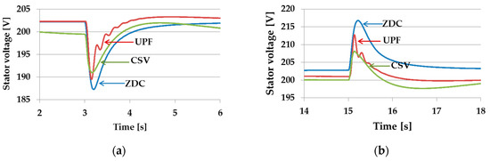 Results of the stator voltage (a) loading case, (b) load removal case.