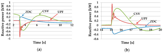 Results of the generator output reactive power (a) loading case, (b) load removal case.