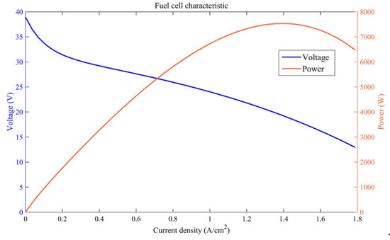 Figure 2 shows the curve of the voltage and power of the fuel cell changing with the current density.