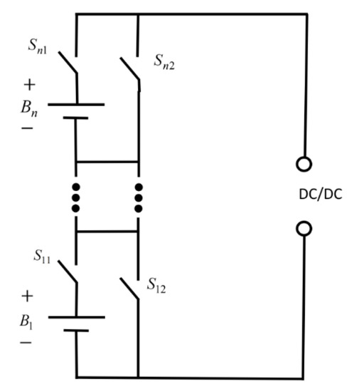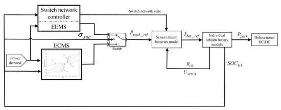 The switch network [37] shown in Figure 7 can control the number of working batteries by controlling the switches of branch and bypass. For example, when the switch is closed and is opened at the same time, the battery can be connected to the circuit. On the contrary, the battery can be disconnected. According to the SOC state of each lithium battery and the current power demand, the EEMS performs power distribution, and the switch controller performs real-time control on the switch network.