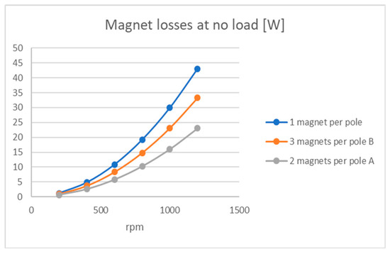 Magnet losses under no load for a 1.4 kW machine, Q = 12, p = 10 (simulation results).