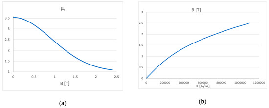 Magnetic wedge characteristics: (a) relative permeability; (b) magnetization characteristics.