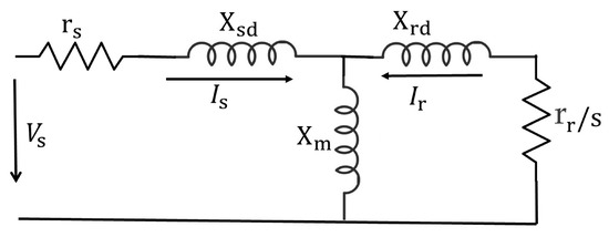 Equation (2) is obtained by applying the Ku transform in Equation (1). The output variables, the torque and current, are expressed based on the model parameters. Here, s is the motor slip calculated as