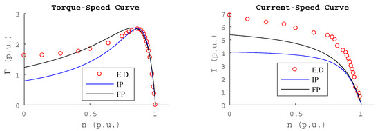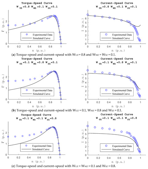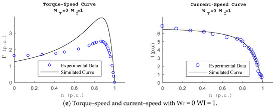 Table 2), the fitting to the torque–speed curve is the largest of all calculated, and the fitting to the current–speed curve is 1.62, the smallest of all calculated.