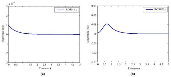 Based on the obtained results of the Lemma 1, the matrixis stable. Consequently, the ROSME (Equation (14)) is asymptotically stable in the sliding mode,which means thatin the Equation (17) also converges to zero. Thus, once we can see that the ROSME (Equation (14)) and estimator error dynamics (Equation (17)) are asymptotically stable in sliding mode.