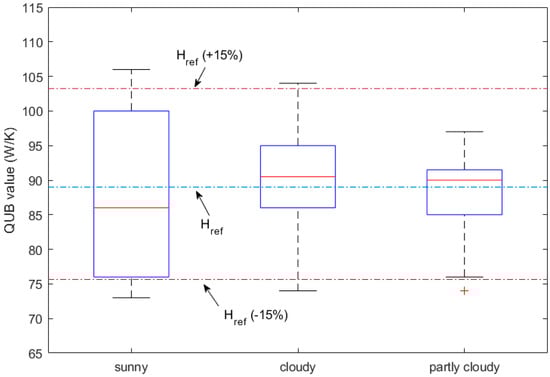 This also means that, in practice, the experimentalist will clearly notice that “something went wrong” in the sense that the measured value of the heat loss coefficient is very different from the assumed value (median difference being 100% − 16% = 84%). The experimentalist can then suspect that there is an important gap between the theoretical design of the building and its actual state. This could also trigger another QUB experiment, using for the design of experiment the measured value of the heat loss coefficient instead of the theoretical (or stated by design) value. In this case, the measured and the assumed values would be much closer, confirming the important gap between theoretical and actual thermal performance.