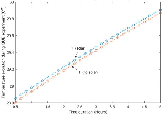 There was a reduction of the error to 10.5% when the experiment was performed one hour after the sunset (Figure 6). There was no further reduction of error when the starting time of QUB experiment was further delayed. It could be inferred that the solar radiation influenced QUB results.