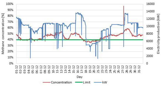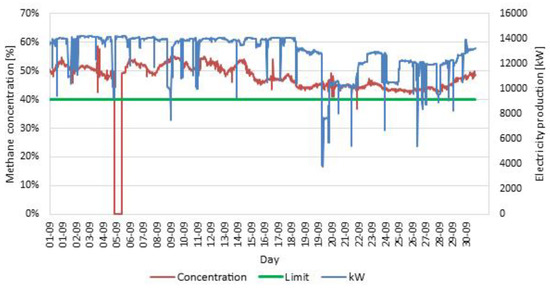 Figure 9. Methane concentration was much lower than 40%, which significantly reduced the volume of electricity production.