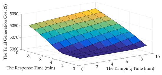 (d) The generation cost increases rapidly as the duration of the response stage rises. Shortening the system duration in the response stage can significantly extend the safe operation region of systems and decrease the total generation cost.