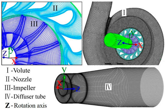 The physical model comprises the volute, vanned nozzle ring, shroud impeller and diffuser tube, as shown in Figure 1.