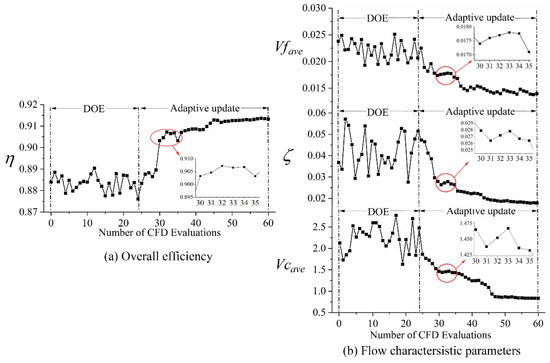 As discussed above, flow characteristics in the turbine expander were well-depicted by the four characteristic parameters of η, , ζ and . To achieve the swirling flow control and cavitation suppression goal, the objective function can be defined through a combination of normalized characteristic parameters, given by