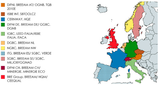 In 2014, the European Commission (EC) released the Communication on Resource Efficiency Opportunities in the Building Sector—COM (2014) 445 [12], which declared the need for a common European approach to improve the environmental performance of buildings throughout their whole lifecycle. In fact, this is a policy maker response with the objective to organize the complex GBRS ecosystems worldwide and specifically within the EU. According to different authors, there are between 70 [13] and 600 [14] GBRSs working at the moment.