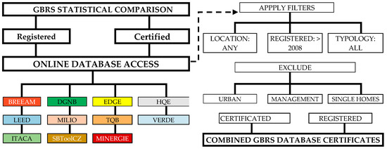 According to the objective of this research paper, a ranking of the most used GBRSs within the EU must be defined to proceed with a consistent methodology that can be applied for every GBRS carried out in any of the EU members. Therefore, the establishment of the aforementioned ranking was defined as the first step of this methodology. As can be seen in Figure 3, the statistical comparison carried out includes both registered and certified GBRSs.