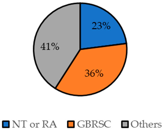Most relevant papers within the database obtained from the literature review can be classified into three groups (see Figure 11), according to their research objective: those providing New Tools (NT), Frameworks, or Regional Adaptation (RA) of current GBRS, see Appendix A, Table A1; those providing a comparison between different GBRSs (GBRSC), see Appendix A, Table A2; and finally, other papers that cannot be included in any of the preceding categories.