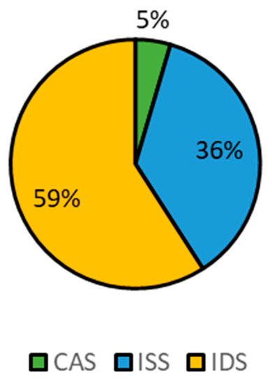 Papers from all regions were analysed to determine the kinds of comparisons that authors have conducted. As mentioned in Figure 11, the GBRS score was structured into the CAS, ISS, and IDS. Therefore, Figure 12 presents the proportion of papers focused on these systems. There, it can be seen that few authors provided a category system comparison, while the research objective for most authors was focused on CRS or IDS.