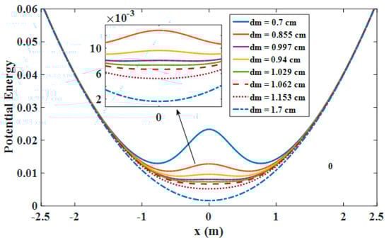 Potential energy of the harvester system for various values of dm.