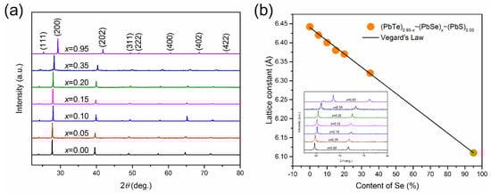 - Su, T.; Li, S.; Zheng, Y.; Li, H.; Hu, M.; Ma, H.; Jia, X. Thermoelectric properties of PbTe1−xSex alloys prepared by high pressure. J. Phys. Chem. Solids 2013, 74, 913–916. [Google Scholar] [CrossRef]