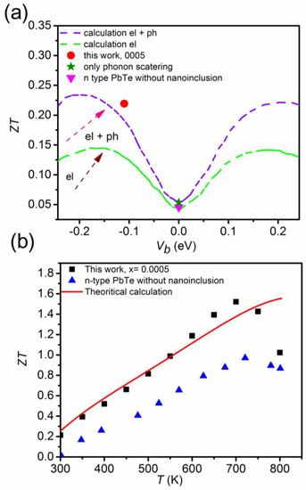 - Faleev, S.V.; Léonard, F. Theory of enhancement of thermoelectric properties of materials with nanoinclusions. Phys. Rev. B 2008, 77, 214304. [Google Scholar] [CrossRef]