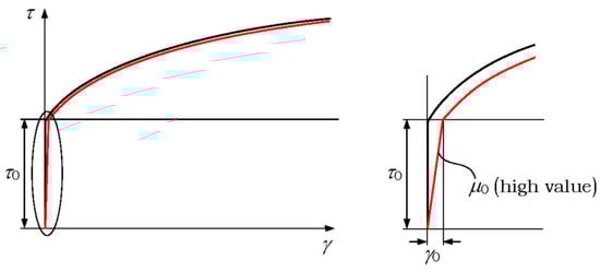 and the graphical representation is given in Figure 1. The value for γ0 is determined by setting the viscosity ν0 to some high value (say 0.1), as the input parameter to the model. The value for the viscosity, which is required in the momentum equation, is then determined as being equal to ν0 for local values of γ < γ0 and the viscous stress is then closely equal to τ0, whereas for γ > γ0 the viscous stress calculated from the expression (10) will nearly be equal to the theoretical value in the expression (7). In this manner, the singularity at γ = γ0 is avoided and the numerically obtained viscous stress is negligibly different from the theoretical value in the expression (7), the difference being determined by the value for ν0 and γ0: the higher the value for ν0 is set, the lower will be the value for γ0 and the viscous stress will be closer to the theoretical value.