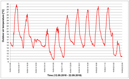 Outdoor air temperature distribution obtained on the basis of measurements carried out in the period from 12 September 2018 to 22 September 2018.