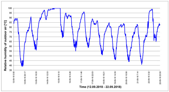 Relative humidity distribution of the outdoor air obtained on the basis of measurements carried out in the period from 12 September 2018 to 22 September 2018.