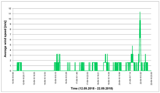 Distribution of average wind speed obtained on the basis of measurements carried out in the period from 12 September 2018 to 22 September 2018.