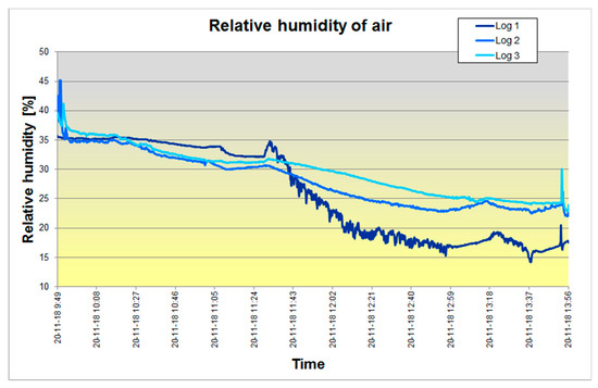 Relative humidity of indoor air of the laboratory recorded by the three loggers.