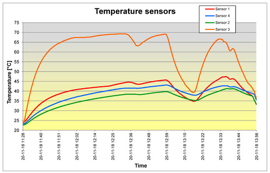 Graph of temperature values on the time axis obtained from the measurements.