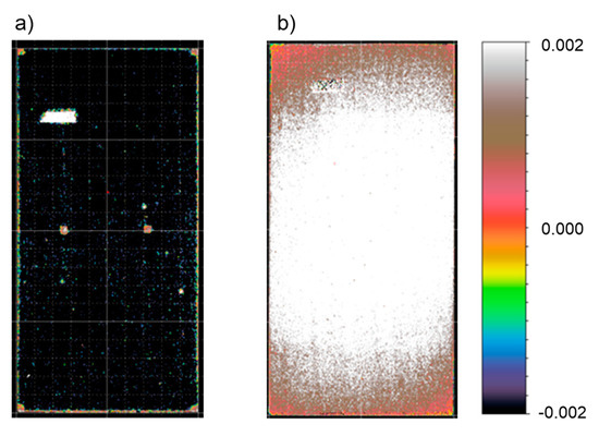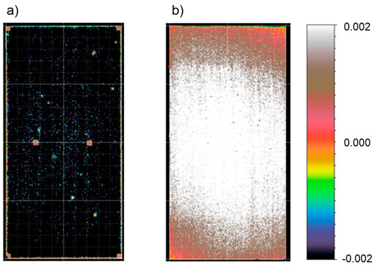 Deformation map of spot-glued panels obtained from 3D scanner readings. (a) C-type panel, (b) B-type panel.