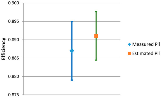 With the indirect method, the total losses are 705.405 W, the efficiency η1 is 0.8870, and is 0.0079; by replacing the additional losses with estimated ones processed with the method in (16), the total losses are 680.210 W, the efficiency η2 is 0.8910, and is 0.0066. The corrected input power is 6242.68 W, with a combined uncertainty equal to 41.032 W.