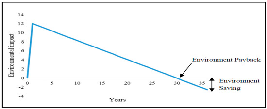 In order to calculate the “Environmental Payback (EP)” a method described by Nydahl et al. [] is used. The methodology output is illustrated in Figure 1.