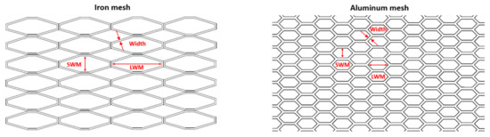 The dimensions of the iron and aluminum meshes.