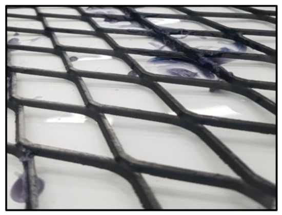 The iron mesh used in this study had a short way of mesh (SWM) of 50 mm, and a long way of mesh (LWM) of 152.4 mm. The wires of the iron mesh had a width of 5 mm and thickness of 4.5 mm. The density of the iron mesh was relatively high (7850 ), hence a considerable weight (5.70 kg) was attached to the backside of the PV module with structural adhesive. Consequently, it was difficult to attach the iron mesh using an adhesive. Therefore, this study also examined the cooling performance of the aluminum mesh, which was lighter than the iron mesh. The aluminum mesh had an SWM of 5 mm and LWM of 10 mm. Its wires had a width and thickness of 1 mm. The density of the aluminum mesh was approximately 2702 , hence relatively less weight (0.025 kg) was attached to the PV module with double-sided tape. The weight of the aluminum mesh was approximately 0.43 % that of the iron mesh. (Figure 5 and Figure 6). In addition, the contact areas of the iron and aluminum mesh between the PV backside were 0.001062 and 0.000017 respectively in the condition of assumptively perfect contact.