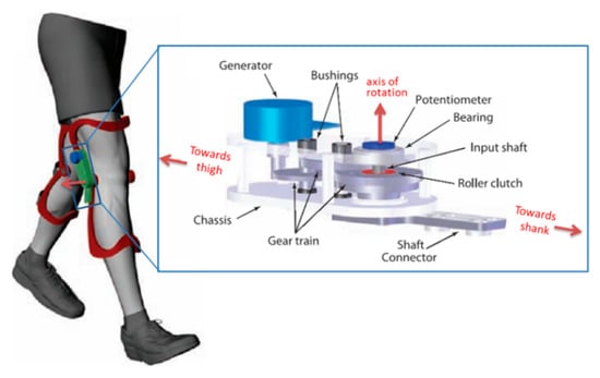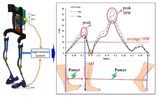 - Research motivations have been confined to the supply power for portable, wearable, or even implanted electronic devices. In consideration of the long-term vision and more extensive application, the wearable frames that assist humans to move and take steps have the potential for energy regeneration, such as a gait orthotic system and exoskeleton [,].
